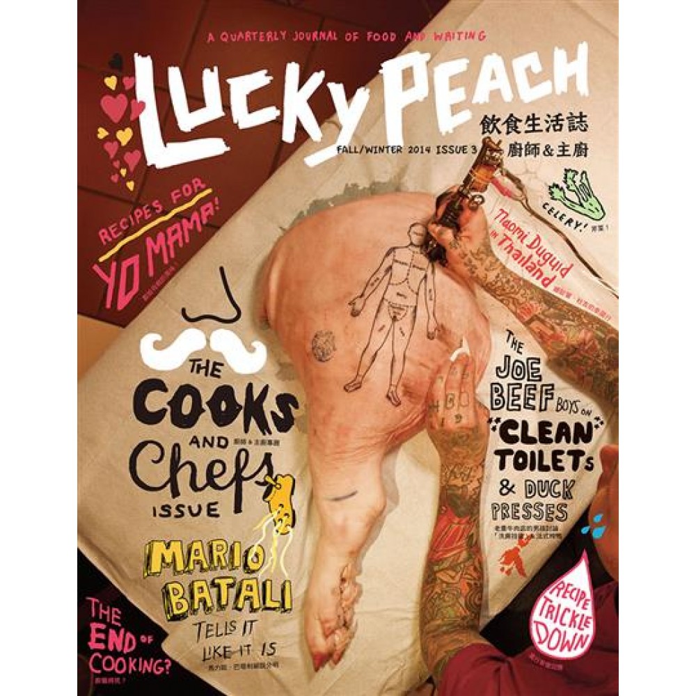 電視充斥美食競賽節目,廚師晉升為偶像名流。 名流主廚時代來臨,然而高到極處終有時, 當喧囂落定,廚師這行業將會如何? 廚藝和料理界又會怎樣演變? ◆主廚大聲說!大衛張領眾家主廚道盡廚師這行和料理界的楣角內幕,言辭交鋒,觀點犀利,經驗分享,看熱鬧更看門道! ◆廚師眾生相!有致力餐廳清潔的牛肉店廚師,有為南極工作站煮食的廚師,有在泰國清邁擺攤的女廚,有美食節目捧紅的名流主廚,以及軍隊廚師、法國主廚、港式飲茶點心師傅等,各類型廚師風格面面觀,各憑本事引領風騷! ◆飲食風潮趨勢!名流主廚和媒體大廚如何產生?到底該不該去上廚藝學校?「私廚時代」來臨。飲食界的風行草偃效應:看美食與時尚概念的相似與不同。 ◆名家現身說法!哈洛德?馬基解說分子廚藝。馬力歐.巴塔利細說分明大廚職涯。安東尼.波登評論飲食男女之吃、喝、性、死。法國名廚亞倫?杜卡斯和艾瑞克?里佩爾的大師開講。大衛張驚人預言:廚藝將死! ◆飲食藝術化!插畫家、漫畫家、塗鴨藝術家、版畫家、字型設計師、攝影師等創作手稿,提供歡樂好玩又不失個性潮感的閱讀樂趣和視覺感受。 ◆20道大廚經典創意食譜!包括Momofuku旗下餐廳和奶點吧獻給母親的佳餚和甜點、經典的法式榨鴨和新英格蘭巧達濃湯,以及用微波爐就能做的2分鐘巧克力馬克杯蛋糕等,捨棄煩人的食材步驟說明,改以理性邏輯觀點,清楚呈現每道菜如何發想及料理出來的思考過程。 ◆中文版特別邀請國內名家助陣撰文,包括:朱慧芳(財團法人梧桐環境整合基金會執行長)、謝忠道(旅法飲食作家)、Liz高琹雯(美食作家)。 《Lucky Peach》是全新型態飲食生活誌,採季刊形式發行。背後創作者包括紐約知名餐廳Momofuku主廚、《時代》雜誌百大人物和評選食神、James Beard獎得主的大衛張、《Momofuku》美食書的共同作者彼得.米漢,以及製作TLC旅遊生活頻道節目「波登不設限」的艾美獎得主的Zero Point Zero製作公司。 《Lucky Peach》的飲食書寫不唱高調,沒有八股,盡是滿滿對飲食的熱情創意和犀利見解,有時甚且是自嘲搞笑的,還可一窺業界內幕。《Lucky Peach》也大開你的飲食視野,打破食物與藝術、音樂、政治、文學、文化的界線,不再壁壘分明,看到各領域人都把食物當成共同興趣。更棒的是,閱讀這些飲食佳文好圖而食指大動時,書裡還提供20道好吃又好做的大廚創意食譜,保證同時滿足你的腦袋、味蕾和肚子! 第三集的主題是廚師&主廚。人人都會做菜,但是誰撐起營收上億的飲食王國?又是怎樣的商業機制在運作料理世界?本集試圖以廚師的時代意義回答以下關鍵問題:廚師明星、電視名廚,在廚師爭相出名的料理名流國度,什麼才是廚師的真實意義?主廚在意的是料理抄襲風、還是技藝傳承,或是業界影響力?自法國一代名廚米榭.伯哈創造出巧克力熔岩蛋糕後,這塊小小蛋糕如何從法國山城拉吉奧勒的高檔餐廳出現在美國Walmart廉價超市的冰箱中?調酒師為何不搗碎薄荷而改用拍打來取其風味,讓食物科學家哈洛德?馬基告訴你。大衛張又為何發出驚人之語說:廚藝將死? 本集另外還收錄: ?美食作家梅芮迪絲.艾利克森與標榜「從頭吃到尾」的英國名廚弗格斯.韓德森的精采對談。 ?加拿大美食書籍獎得主娜歐蜜.杜吉在泰國清邁的路邊攤食記。 ?紐約創新四星餐廳Lespinasse的傳奇一生。 ?義大利名食評家安德烈.貝提尼吐露一生與歐洲頂級名廚搏感情換來的幾段插曲。 ?廚師身體各部位的職業傷害和治療方式。 ?Momofuku奶點吧主廚克麗斯汀娜.托西的鳳梨反轉蛋糕,還有烤雞披薩、春蔬義大利麵、超簡單易做的2分鐘巧克力馬克杯蛋糕…… Contents 編者的話──彼得?米漢(Peter Meehan)&應德剛(Chris Ying) Features 誰夠格當廚師?──朱慧芳 Chef,你的工作是什麼?──謝忠道 台灣有名廚嗎?──Liz高琹雯 主廚大聲說──大衛張、塞特.拜恩斯(Sat Bains)、克勞德.波西(Claude Bosi)、丹尼爾.派特森(Daniel Patterson) 飲食男女之吃、喝、性、死──安東尼.波登(Anthony Bourdain) 老喬牛肉店的洗廁藝術──彼德.米漢 南極廚師──傑西.葛林(Jase Grimm) 小攤女子:小莉、百緣和蘭珠──娜歐蜜.杜吉(Naomi Duguid) 巴塔利細說分明──馬力歐.巴塔利(Mario Batali) 哈洛德.馬基的極度空間:分子廚藝──哈洛德.馬基(Harold McGee) 名流產生器:媒體大廚──克里斯.瑟欽(Chris Cechin) 風行草偃效應:美食與時尚概念的迂迴路徑──克麗斯汀.穆克(Christine Muhlke) 午餐媽媽──茱莉亞.修馬拉.阿瓦雷茲.歐維斯(Julia Xiomara Alvarez Oweis) 軍隊廚師──泰瑞莎.史諾(Theresa Snow) 爆漿蛋糕人人愛──瑞秋.孔(Rachel Khong) 地獄廚師大對決──麥特.富里(Matt Furie) 力量之塔──梅芮迪絲.艾利克森(Meredith Erickson) Lespinasse的餐廳歲月──亞曼達 .庫特(Amanda Kludt) 你該上廚藝學校嗎?──馬克.威爾森(Mark Wilson) 真實故事──安德烈亞.貝提尼(Andrea Petrini) 醃蛋––非復活節蛋──何天容(Tienlon Ho) 私廚時代──凱倫.萊波維茲(Karen Leibowitz) 法國廚師──馬修.勒孔特(Mathieu LeComte) 吃要吃得好──傑克.卡尼爾(Jack Carneal) 我看見黑暗──大衛張 古代大師──湯瑪斯.伯恩哈德(Thomas Bernhard) 點心師傅──余夢賢(Peter Ye) 廚房傷害人體地圖──海倫.何力曼(Helen Hollyman) 大廚的祕密生活──麗莎.海納華(Lisa Hanawalt) Recipes 獻給母親的美味 鳳梨反轉蛋糕 酒漬鳳梨 白巧克力和爆米花 焦糖爆米花