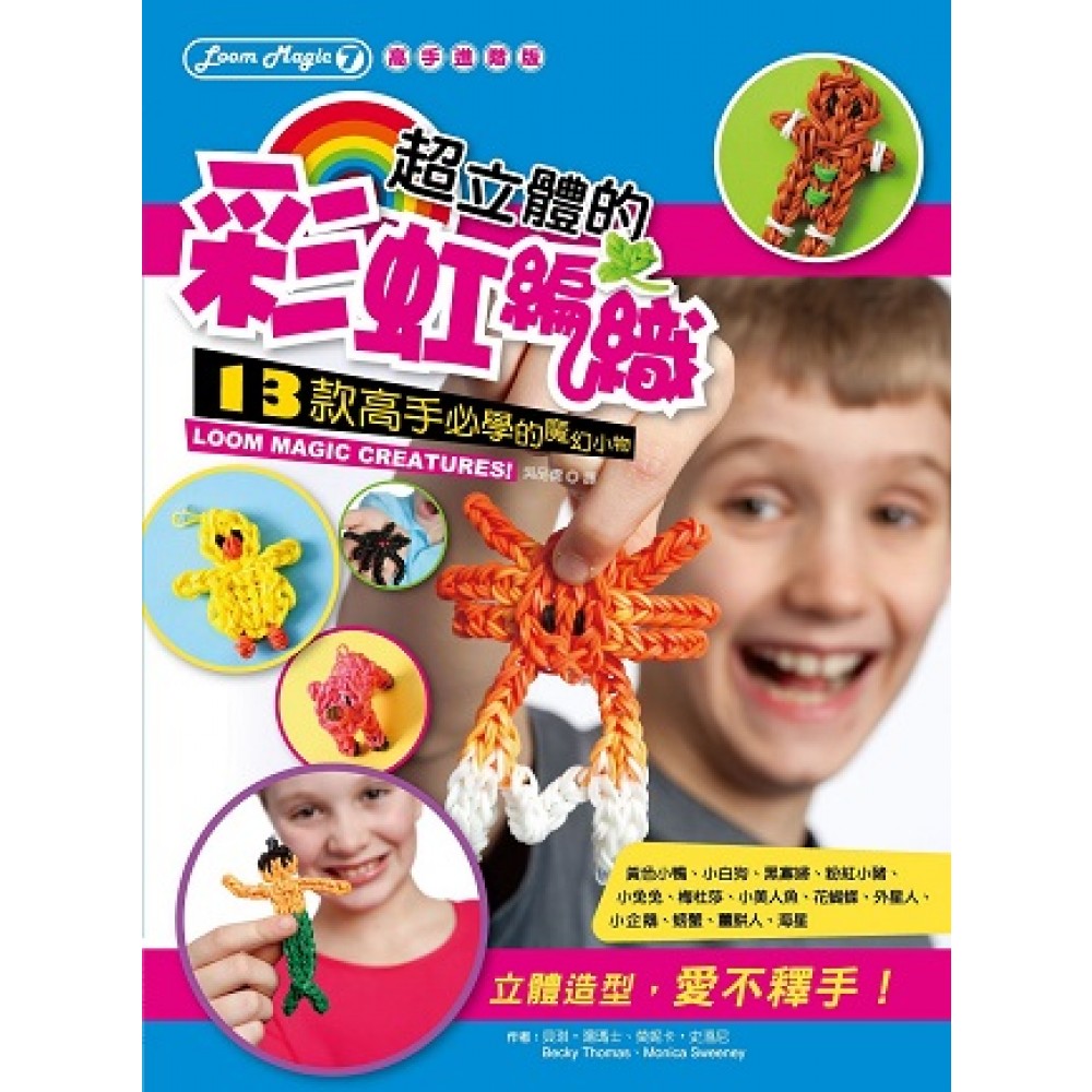 席捲歐美,風靡全球! 全球最豐富的彩虹編織系列! 美國銷售超過1,500,000冊,英國銷售超過800,000冊! 加拿大、英國、法國、德國、荷蘭、西班牙、義大利、挪威、日本…等數十國爭相引進! 中文版獨家新增編織對照表,讓你一目瞭然! 培養孩子專注力X促進親子關係X上班族療癒小物 有了這一本,讓你的彩虹編織功力大增! 13款從沒見過的魔幻小物一次學會! 立體造型,讓你愛不釋手! 彩虹編織原本只是美國一位華裔父親做給女兒的小玩具,卻因為玩法簡單、變化多端,又可以激發孩子的創造力與想像力,瞬間席捲全球中小學校園。因為彩虹編織成為一種獨特的手工藝術、提供無限創意的空間以及想像實現的可能,除了小朋友之外,連大人、老人也都為之著迷。甚至連各國明星如貝克漢、茱莉亞羅勃茲,凱特王妃等,都瘋狂陷入彩虹編織潮流與樂趣中。 彩虹橡皮筋除了可以編手環、戒指,還可以利用編出黃色小鴨、小白狗、黑寡婦哦!本書以最清楚的呈現方式,一步一步教你學會粉紅小豬、小兔兔、梅杜莎、小美人魚、小企鵝、薑餅人、海星…等13款高手必學的魔幻小物。 準備好了嗎?一起進入彩虹編織的魔法世界吧!