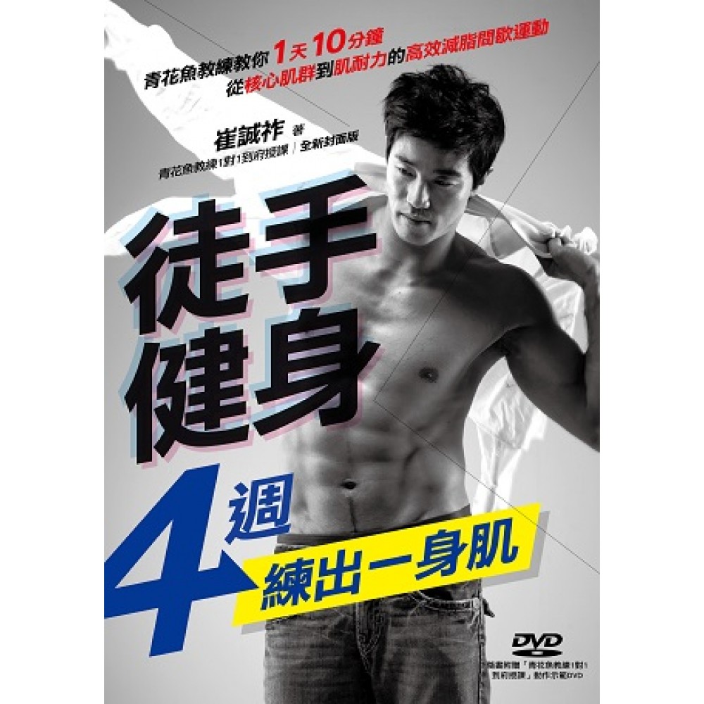 《青花魚教練1對1到府授課》全新封面,強勢回歸! 韓國健身之神「青花魚教練」崔誠祚量身打造的【4週健身計畫】, 以「徒手動作」為架構,結合快速降低體脂的「間歇運動」, 融合「暖身、有氧、肌力、緩和」功效的鍛鍊排程, 一天只要10分鐘,在家隨時都能上的健身課,帶你徒手練出傲人一身肌! 一般健身書做不到的「超詳細動作分解」,本書完全解構。 一般教練無法示範的「各步驟定格畫面」,本書完整呈現。 針對4週不同的強化主題,做最精實準確的訓練, 【鍛鍊核心肌群X提升強度X調整協調性X增加肌耐力】 你的身體是最好的健身房,而本書就是你最好的健身教練!! 減掉多餘贅肉只是基本中的基本, 還要有精壯的肌肉、結實的線條、強健的體魄! 但說起來容易,做起來卻阻礙重重…… 即使心一橫繳了健身房的會費,抽不出時間運動也只是白費。 想自己在家練,又不知道方法,練半天也不知道是在練肌肉還是練心酸。 啞鈴、壺鈴、彈力繩,琳瑯滿目的健身器材究竟該買不該買? 健身不像減肥少吃多動就有用,但怎麼吃才能加快練出肌肉? ───你的需求,青花魚教練都看到了! 幫助45歲韓星車勝元練出精壯身材,一舉登上「性感歐巴」巔峰的健身界傳奇! 甫出書即狂銷30多萬本,各大韓綜爭相邀請的青花魚教練崔誠祚親自出馬, 告訴你如何利用間歇快速減脂,不需器材,就能練出讓男人眼紅、女人臉紅的王字腹肌! 並提醒你健身須知、幫你排課程、帶你跟著做、教你怎麼吃, 從最基礎的核心肌群開始逐步鍛鍊,只要4週,看見截然不同的自己! 【掌握本書4大特色,4週練出一身傲人肌肉】 【特色1】徒手做出完美鍛鍊!一天10分鐘,不用器材、空間,靠間歇降脂、肌力強化,從核心到肌耐力通通搞定。 分別以「核心、高強度、全身協調性、肌耐力」為主題,從基本體力開始依序鍛鍊,針對身體各部位做有效強化。並結合快慢「間歇運動」,以不同強度的動作,在短暫的運動時間內加速體脂肪燃燒速度。一天10分鐘,鍛鍊、降脂一次到位! 【特色2】精彩大圖詳細分解!不放過任何細節的連續定格畫面,逐一檢視呼吸方式、常見NG動作,彷彿教練到府授課。 完整收錄各步驟分解圖,再加入實際示範也無法辦到的連續定格畫面,一步一步跟著做,再細部的動作也絕不馬虎!具體標示時間、角度、呼吸、用力方式,逐一提出各動作需注意的重點、常見錯誤,彷彿教練隨時在旁一一檢視。 【特色3】超人氣教練親自示範!「暖身、有氧、肌力、緩和」4合1健身排程,獨家收錄韓國青花魚教練親自示範DVD&QRCode。 「青花魚教練」親自設計的4合1健身課程,先暖身避免受傷,再靠有氧消耗熱量、全身運動提升肌力,最後做緩和動作舒緩緊繃。依照功效精確組合各種在家就能做的動作,並收錄原聲影音教學DVD,51個困難動作細部分解,還能掃描QRCODE,隨時隨地跟著做! 【特色4】「動吃」一起來,肌肉養成加倍速!分階段循序挑戰,搭配營養師設計健身菜單,照著做、跟著吃,4週變身「性感歐巴」! 每天課程分為4個階段,可依照個人當前體力、目標需求,自由選擇運動時間長短。並在書末收錄「各部位最佳運動Best3」,針對想加強的部位直接做最有效的鍛鍊。特別邀請韓國知名營養師金恩美,設計出4週完整健身菜單,良好的營養管理習慣,讓健身速度提升2倍!