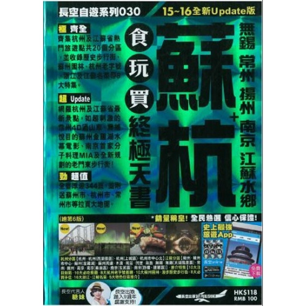 極 齊全 齊集杭州及江蘇省熱門旅遊點共20個分區,並收錄歷史步行街、蘇州園林、杭州老字號、浙江及江蘇名菜等8大特集。 超 Update 網羅杭州及江蘇省最新景點,如超刺激的常州4D過山車、震撼悅目的蘇州金雞湖水幕電影、南京首家分子料理MIA及全新規劃的老門東步行街! 勁 超值 全書厚達344頁,並附送蘇州市、杭州市、常州市等拉頁大地圖。 杭州分區【杭州.杭州(西湖景區).杭州(上城區).杭州市中心北】江蘇分區【蘇州.蘇州市中心.蘇州(金雞湖).蘇州周邊.木瀆.周莊.同里.甪直.無錫.無錫(太湖風景區).常州.揚州.南京.南京(秦淮區).南京(玄武區).南京(鼓樓、建鄴區)】.推介特集【10大注目新點.10大必吃餐廳.8大杭州老字號餐廳.10大蘇州園林.漫步歷史步行街.8大必買手信.16大浙江、江蘇名菜.5大特色住宿推介】