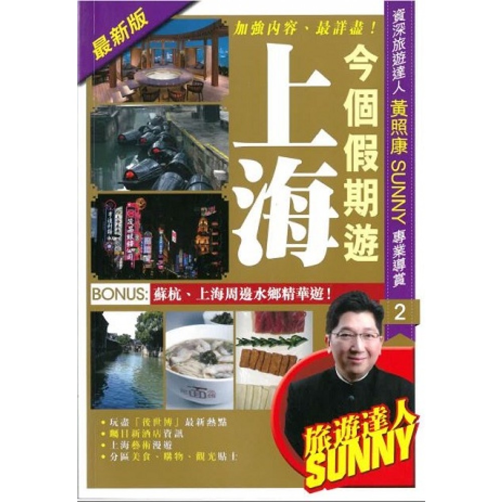 上海為我國名城、經商重鎮,是國內有數的現代大都會,也是最國際化的城市,旅遊業蓬勃發達,在繁華摩登的面貌背後,又蘊涵著千姿百彩的深厚的海派歷史和文化,確是引人入勝。資深旅遊從業員兼專業培訓導師黃照康Sunny精選了上海各區的不同食買看玩遊點,詳細介紹,分享親身體驗和實用貼士。Sunny的旅遊書內容豐富、資料詳盡、富有個人風格而不失其實用價值,以美食部分的「Sunny推介」乃精選中的精選;讀者可參考其品評按圖索驥,印證美味。