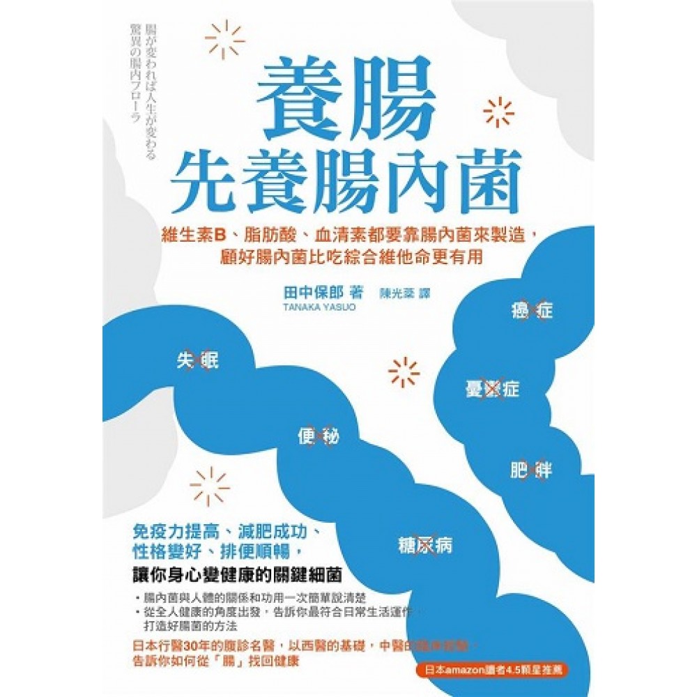 腸菌力=健康力 話題沸騰!日本amazon讀者4.5顆星推薦 紅遍世界的腸菌健康新趨勢,一次說清楚 你的腹部是又軟又暖,或是又冷又硬? 日本行醫30年的腹診名醫,以西醫的基礎,中醫的臨床經驗, 告訴你,如何從「腸」找回健康: ‧腸內菌與人體的關係和功用一次簡單說清楚 ‧從全人健康的角度出發,告訴你最符合日常生活運作,打造好腸菌的方法 心肌梗塞、中風、肥胖、糖尿病、偏頭痛、厭食、憂鬱、家暴、拒絶上學……, 這些身體和心理的問題竟都與腸內菌有關,只要改變腸內菌,你的身體、心理問題都能獲得改善,甚至進而改變你的人生。 你的腸道環境能讓腸道好菌生存嗎? 你的腸內菌是讓你快樂,還是讓你憂鬱? 什麼菌才是好腸內菌?我們應該打造出怎樣的腸內菌圖譜? 如果三歲前建構腸內菌失敗,之後還能彌補嗎? 把瘦老鼠和胖老鼠的腸內菌相互移植,胖老鼠會變瘦,瘦老鼠會變胖,這就是腸內菌叢的力量! 人體的消化、吸收、排泄都要靠腸內菌,腸內菌不健康,人也一定不健康。 【你所不知的腸菌力】 ‧腸菌也與糖尿病有關? 好菌能抑制脂肪增加,讓血糖正常,避免體內慢性發炎,能預防肥胖,就能預防糖尿病。 ‧腸菌可以擊敗癌細胞? 好腸菌可以活化能攻擊癌細胞的免疫細胞,也可以讓腸道環境健康,避免誘發癌症。 ‧腸菌可以防治心血管疾病? 好腸菌可以讓多餘的膽固醇附著在自己身上,一起變成糞便排出體外,避免血管硬化。 ‧改善腸菌就能改善過敏和皮膚炎? 腸菌不健康,就無法消化吃進我們體內的食物,引起過敏,改善腸菌,症狀就能得到改善。 ‧只要調整腸菌,減肥就能成功? 好腸菌會製造短鏈脂肪酸,抑制脂肪吸收,還能消化脂肪,讓人不變胖。 腸菌中有胖菌也有瘦菌,胖菌從膳食纖維中吸收能量的功能較強,只要胖瘦菌比例恰當,身體自然不變胖。 ‧腸內菌可以打造美肌與青春? 壞菌排出的毒素被腸道微血管吸收,就會傳遍全身,老化症狀、青春痘、乾燥、皺紋、斑點就會產生,改善腸道環境,讓好菌增加,就能打造美肌與青春。 ‧腸內菌可以改善巴金森與阿茲海默症? 大腦需要的多巴胺和血清素,都需要由腸內菌傳給大腦,腸內菌健康,腦部問題就能獲得改善。 ‧腸內菌可以改善失眠及憂鬱? 腸內菌可以合成維生素、神經傳導物質,並調節荷爾蒙,如果這些不足就會發生神經病變、甚至引發憂鬱、健忘。 ‧腸內菌是提高人體免疫力的保鑣? 腸內菌會包覆在腸道的上皮上,防止病原菌入侵,好菌製造出來的乳酸,也能讓腸道保持在偏酸性,防止病菌繁殖。 【這樣做,腸菌會變強】 ‧吃真正的發酵食品 長時間熟成發酵的食物有豐富的好菌,有助培育腸內菌叢。 ‧喝好水 糞便中有七○至八○%都是水,適度飲水能有效活化腸道,讓腸內菌叢維持在良好的狀態。 ‧吃好油 一天兩湯匙油,吃好油可以潤滑腸道,幫助糞便排出,改善腸道環境。 ‧多吃青菜、海帶等膳食纖維 足夠的膳食纖維可以提升好菌比例,經好菌轉化後會生成脂肪酸和甲烷,提供身體能量。 ‧抗性澱粉能活化腸內菌叢 抗性澱粉中含腸內菌喜愛的直鏈澱粉,是腸內菌喜愛的大餐,可以讓好菌生產好脂肪酸,預防癌症,降低膽固醇,幫助礦物質吸收 ‧運動腹肌 腹式呼吸、唱卡拉OK、走路健行,都能促進腹部血液循環,讓腸內菌運作變好。