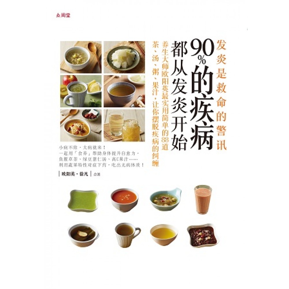 作者序 只有提升自愈力,才能守住健康/欧阳英 我从三十岁开始,便用包吃包住的方式收留患有癌症与疑难杂症的病人,名下的三间房子,都做为调养场所,帮助病人改善体质、恢复健康。迄今我也将此食疗方法带到大陆的重庆与浙江,成立了「食疗康复基地」,也即将在北京要成立第三所!希望在病人的疗愈过程中,能结合医疗与食疗,让病好得更快,并且连根拔除,永不再来! 总括三十余年的临床经验,病人除了「能吃、能睡、能动」的基本条件外,还必须加上「能利尿、能通便」这两个重要条件,才会迅速康复!最好是靠纯净的饮食设计,朝向零风险的食疗方向走,完全没有副作用才最安稳、最可靠!要顺应身体的症状,做出精准的饮食安排,例如腹泻时别急着吃止泻药,先要明白一定是肠道有不好的废物毒素,身体才会用「泻」的方式来排除,此刻应吃「木瓜香蕉酸奶」或「牛蒡原汁」,让身体泻得更彻底,完全把肠道宿便泻干净后,再喝「小米红枣地瓜粥」来收敛止泻,一切都要顺应自然。 「身体分分秒秒都在守护我们的生命」,所有异常的生理现象都是疗愈的过程,我们必须正确地解读它、支持它,并且不要阻止它(例如吃止泻药)。当身体某一器官发炎时,也是同样的状况,一定是吃、喝错了,病从口入,然后身体便启动了自愈力,发动免疫系统,号令白血球与病毒细菌作战,全面展开攻击,于是我们就看到了红肿,甚至化脓流汤。其实这是反映战况惨烈,病毒细菌尸体化成了脓汤,我们应该要庆幸并感恩身体,为我们的健康努力奋战、不眠不休,不成功不罢休! 到底在体内发炎时,我们要如何大力支持身体呢?一、不吃「炸、煎、熏、烤、爆香」的食物。二、不吃任何加工食品。三、晚上提早就寝。四、要全素或素多荤少,少油、少盐、少糖。生命有无限的神奇,会自寻出路!当所有的疑难杂症(包括癌症)不药而愈时,那不叫「奇迹」,是我们尽了本份改善错误的生活作息与饮食内容,一切都是水到渠成,自然发生,谁都能做到! 我与徐凡在复兴电台长期宣扬饮食疗法,感谢她提供这么好的平台,让大家得以充分交流「吃的智慧」。盼望透过徐凡与我的努力,大众能够正确选择食物,并且学习自然疗法,在平常时守护全家大小的健康,传承给后代、护佑子孙。 食养,重启身体健康密码/徐凡 在节目中与欧阳老师合作多年,深知精力汤好处。一星期我会饮用精力汤三或四次并食用五谷杂粮,以辅助因忙碌而无法兼顾的营养,尤其老师常在节目中提醒「便秘」是万病之源,在日常生活中我会特别摄取含有膳食纤维的食物,以保持身体机能的活力。 不知你是否和我有相同的看法:这些年罹癌人数与日俱增。除了大环境改变外,影响最关键的还是「饮食」,其实在病发前,身体会有警讯( 如:酸、痛、肿、痒或疲惫等),若再不留意,发炎指数会继续升高,就容易罹癌。有一年,家父因开刀而「肠沾黏」,医生说需要再开刀,但与家人商量之后,决定不再动刀,因家父年事已高,所以转由欧阳老师以「食疗」方式调整改善病情。两周后就稳定康复,同时也见证了「食疗」的功效,连家父都啧啧称奇。再者,我个人体验以「苹果减肥法」也成功瘦身。 在这本《发炎,是救命的警讯》中,分为五大章节,将现今常有的炎症与疾病分类解析。首先说明「食养」与生活习性连结的重要性,在第二及第三章节中,提供常见的炎症与文明病的食疗改善与做法,在第四章节说明有关新陈代谢的相关症状与饮食的调整,第五章节指出癌症的注意事项与分类,还有妇女朋友的常见问题与小朋友疾病的食养方法。书内除了贴心小提醒外,同时整理了「自我检测寒热体质表」以及「蔬菜水果的属性表」,让读者能一目了然,不用再去翻阅其他数据,同时也能开立属于自己的「对症食谱」,若能再配合调整生活作息与运动,就更臻完美。 当身体发炎或不适时会释放出讯号,要学习聆听身体的声音,因长期发炎或反复发炎会引起的疾病,从「食养」着手,就能预防。尤其外食族的朋友,如能找时间定期实行两到三天的定期断食排毒或肝胆排毒,就能重新启动身体健康密码,让肩颈不再酸疼,有神清气爽的全新感受。另外,爱美的朋友们,落实体内环保更增添肌肤净美与去斑的效果。 最后,致谢欧阳老师长期以来在节目中提供的「食养」信息,让我受益良多,同时感谢主编巧涵与编辑郁庭的修改,增添《发炎,是救命的警讯》的阅读性,现在就让我们一起为健康行动吧! 什么是发炎? 炎症,俗称「发炎」,主要是因为身体受到外来刺激而产生的防御反应,这原本是好的预防机制;但相反的,发炎也会造成组织肿胀、渗出液和异常细胞增生,产生致病的风险。愈来愈多的证据显示,许多文明病都与「发炎」有关,比如:心肌梗塞、糖尿病、阿兹海默氏症、癌症、过敏、自体免疫疾病等。三餐外食,油腻的饮食习惯会造成血液黏稠,这常是引起慢性发炎的帮凶。为避免体内产生慢性发炎,除了充足的睡眠与适当的运动外,得要靠正确的饮食观念,从食养着手防炎,就可以预防百病! 食养停看听 我必须很中肯地说,西医对人类的健康绝对有很大的贡献!就时间速度来看,西医特别是在「急重症」与「传染病」的救治上显得快速有效。然而,慢性病是属于生活习惯病,西医治疗慢性病多半是采取抑制和控制的手段,只能治标不能治本。生活习惯病,绝对得从改变饮食着手。以糖尿病为例,