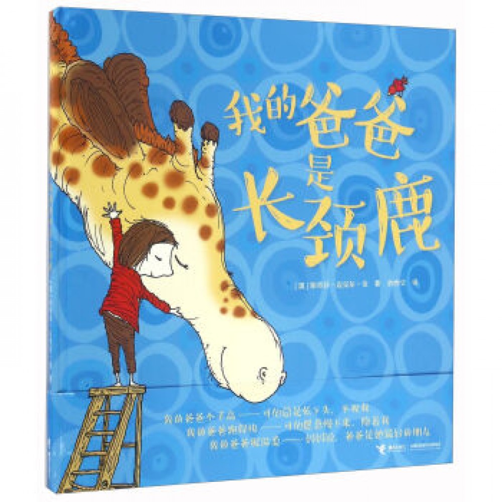 这是一个用第一人讲述的故事,特别之处是,“我”的爸爸不是“狮子”,不是“老虎”,不是“霸王龙”,而是一只“长颈鹿”:他又瘦又高,他浑身斑点,他可以骑上去,像一片“大马”,他可以滑下来,像“滑梯”,他能趟过大河,像一只“船”,他可以“高高在上”,让“我”看清那幅大大的电影银幕……这是一个用儿童思维讲述的故事,宝贵之处是,它以小朋友惯常的“自夸”为切入点,让“我”将父爱的平凡、温暖叽叽喳喳讲述出来,它像一首有关爸爸的“赞美诗”, 用一串串生动的细节再现“父爱”的亲切感、安全感,和读者一起,重温生活中那些平凡美好的瞬间……不管你的爸爸是“狮子狗”还是“长颈鹿”,他一定是你和妈妈最好的朋友。