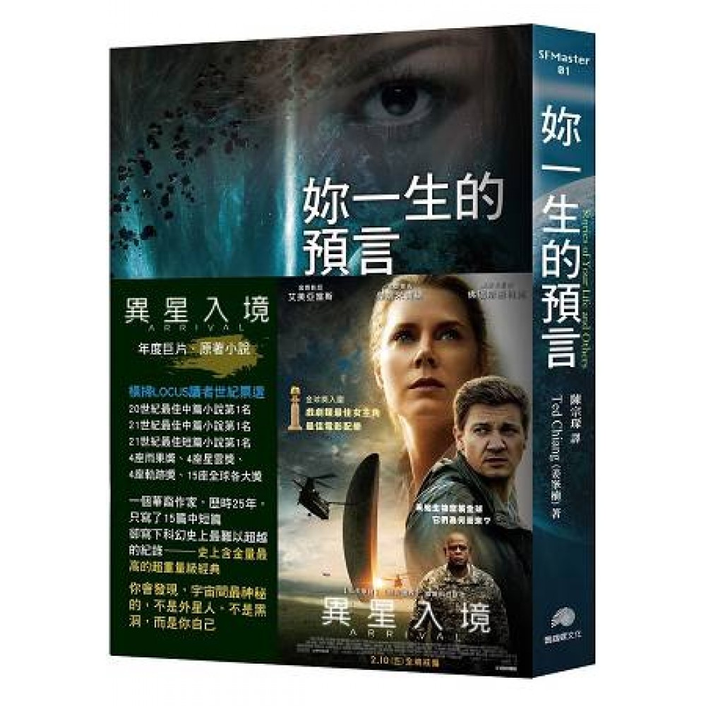 年度科幻巨片「異星入境」原著小說 跨世紀橫掃LOCUS讀者世紀票選: 20世紀最佳中篇小說第1名 21世紀最佳中篇小說第1名 21世紀最佳短篇小說第1名 4座雨果獎、4座星雲獎、4座軌跡獎、15座全球各大獎 台灣人的孩子,華人科幻的最高成就 歷時25年,只寫了15篇中短篇 卻寫下美國科幻史上最難以超越的紀錄 寫下一本史上含金量最高的超重量級經典 太多人渴望預知未來,但什麼是真正的「預知未來」? 但如果有一天,你突然發現自己真的能預知未來,看見自己未來的一生,看到生命中點點滴滴的幸福甜蜜,可是有一天,你會遭遇可怕的災難,而那卻是你絕對無法逃避的,因為所謂的未來,真正的定義是即將來臨的既定事實,是已經實現的未來,再也無法改變,只能一天一天照你看到的那樣過下去,直到那天來臨……那麼,這樣的人生,你要怎麼過? 你真的想預知未來嗎? 也許,看不到未來,才是真正的幸福 因為你還有機會寫下不可知的、有無限可能的、妳一生的故事 有一天,外星飛行體出現在地球上空的軌道,並且在全球各地放置了一種怪異的通訊裝置,看起來像一面六公尺寬的半圓形的牆,只要有人靠近,就會變成透明。 外星人似乎沒有明顯敵意,那麼,剩下的問題是:他們為什麼要來地球?應該最先找誰和他們接觸?誰最有能力解答這個問題? 於是,美國軍方找上了語言學家:一位全球公認最頂尖的語言學家──露伊絲班克斯博士。 然而,一開始困難重重,因為外星人的文字和地球上任何一種文字都截然不同,沒有語法,沒有字句。後來,露伊絲逐漸發現,那是一種符號,單一的符號代表某個事物,然後可以無限連結擴大成一個更巨大的符號,描述一個複雜的事件。更驚人的是,那種符號就是外星人意識的呈現,而符號裡的訊息打破了時間的線性,過去現在和未來是同時存在的,而且所有的內容都是在敘述一個未來確定存在的事實。也就是說:使用那種符號的人,一定知道…… 最後,露伊絲終於學會了那種符號,然後,她發現自己也有了那種能力,因為她看到…… 8篇故事,每一篇都像一顆小型核彈在你腦內炸開,爆破想像的極限 逼你問自己:我為什麼是人?什麼是人生? 遠古時代,巴比倫人渴望看到上帝所創造的完整世界,於是他們建造了一座巨塔,直達天頂。天頂是一大片大理石般的平面,鑿穿了,就能夠進入天堂,看到上帝。然而,當他們鑿穿了天頂,他們看到的是…… 有一個人因為溺水而大腦受損,在接受一種實驗性藥物治療之後,他發展出驚人的智能。為了避開政府的注意,他偷了藥物逃離醫院,不久,他的智能已經高到難以想像,掌握了人類所有的知識技能,甚至能夠操控世界經濟。他開始對人類世界感到不屑,直到有一天,他發現外面還有另一個和他一樣從醫院逃走的人。那個人比他早接受治療,也就是說,智能比他高,但和他不一樣的是,那個人想幫助人類。現在,那個人盯上他了,因為他對人類是一種威脅…… 想像我們的世界,上帝是真實存在的,常常可以看到天使降臨,有時展現神蹟救人,有時掀起災難殺人,而地面偶爾會變成透明,你可以清楚看到地獄。尼爾深愛她的妻子,有一天,妻子在一場天使掀起的災難中喪生,上了天堂。如果想和心愛的妻子相會,尼爾也必須上天堂,而上天堂唯一的途徑,就是真心敬愛上帝。然而,尼爾一輩子沒愛過上帝,他要怎麼做才能夠學會真心愛上帝……