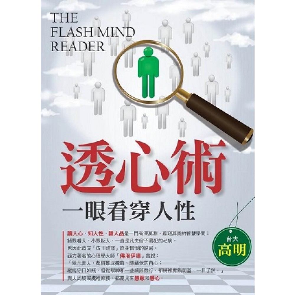 本書特色 讀人心、知人性、識人品是一門高深莫測、難窺其奧的智慧學問;錯眼看人、小眼貶人,一直是凡夫俗子易犯的毛病,也因此造成“成王敗寇”終身悔恨的結局。 西方著名的心理學大師“佛洛伊德”曾說:「舉凡是人,都將難以掩飾、隱藏他的內心;縱能守口如瓶,但從眼神和一些細節微行,都將被掀鍋開蓋,一目了然。」與人周旋或處裡庶務,都需具有慧眼和慧心。