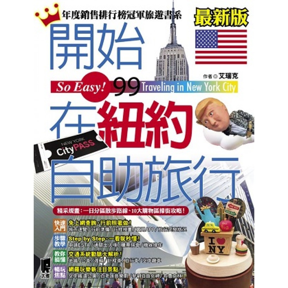 年度修訂版,資訊全面更新! 完整蒐羅紐約重點地區! 精采規畫:一日分區散步路線、 10大購物區掃街攻略、10大必去景點推薦 搭配實際旅遊規畫,交通購票指南,全程步驟化圖解。 讓你輕鬆玩遍紐約最精華! |主題玩樂,最精采| 獨特的節慶遊行、國慶煙火秀、跨年倒數,保證熱鬧又好玩。 擁有最多的博物館、美術館,以及動人的百老匯音樂劇, 喜愛藝術的你,絕對要造訪紐約! |流行時尚,最新潮| 上城買名牌,下城買潮流!紐約就是購物天堂! 各種潮流品牌、特殊商品,擁有全世界最齊全的款式。 不容錯過的紀念品和伴手禮,一次滿足你! |豐富美食,最多元| 星級名廚、創意餐廳、特色小店,絕對能滿足你的胃。 還有披薩、熱狗、焙果、漢堡、杯子蛋糕、甜甜圈, 異國美食大熔爐,來紐約非嘗不可! 本書特色 ★作者長年旅居紐約的豐富經驗 擁有10年以上住遊紐約的旅行經驗,深厚的旅居背景,教你如何自助玩紐約。最不容錯過的主題玩樂、豐富多元的道地美食、行家才知道的購物情報、獨家的私藏玩法,給你最獨特與充滿驚喜的紐約行。 ★Step by Step圖解式教戰手冊 食衣住行大小事項、搭機入境通關、各種交通搭乘接駁、電話怎麼打,Step by Step圖解法,全部流程步驟化,文字與圖片搭配,易懂,操作容易。 ★專治旅行疑難雜症 旅行一開始的準備規畫、辦護照、辦簽證、購買機票、安排行程、機場入出境手續、行李打包、如何搭乘各種大眾交通工具、打國際電話、如何選擇入宿,全都預先設想周到,並給予適當的指示和解答。絕對是害怕自助旅遊者的救星,自助旅遊愛好者的好幫手。 ★各種票券、指標解析 搭機及搭車資訊看板、購票、投幣、按鈕、插孔位置都有拉線指示,跟著本書照著操作,一個人上路也不怕。 ★實用資訊表格 證件哪裡辦、店家、景點怎麼去,相關連絡資料、各方面查詢管道,條例整理為小BOX,一目瞭然、方便查詢。