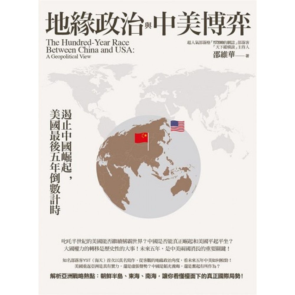 本書是作者第一本書《2020中國與美國終須一戰》的延續,是從一個新的角度觀察中美關係, 從地緣政治徹底解析亞洲戰略熱點,讓你看懂檯面下的國際局勢! 叱吒半世紀的美國能否繼續稱霸世界? 中國是否能真正崛起和美國平起平坐? 大國權力的轉移是歷史性的大事,未來五年,是中美兩國消長的重要關鍵! 超人氣部落格「YST2000的網誌」部落客YST(海天)首次以真名寫作! 從客觀的地緣政治,看未來五年中美如何較勁! 美國重返亞洲是真有實力,還是虛張聲勢? 中國是韜光養晦,還是奮起有所作為? 美國的「重返亞洲」、「亞太再平衡」都是為了遏止中國崛起, 中國會默默承受,繼續韜光養晦?還是蓄積實力,強力回擊? 中美關係是二十一世紀最重要的國際關係,也是最複雜的國際關係, 一個是崛起中的新興大國,一個是已經呼風喚雨超過半世紀的世界霸主。 兩者之間的政治、經濟、意識形態、國家組織,充滿著千絲萬縷的糾葛, 中美競爭究竟是走向合作還是對立,關係著世界歷史的發展。 從地緣政治角度出發,徹底分析中美博弈 無論是軍事專家或是政治人物,分析國際局勢都帶著強烈的主觀意識,本書從地緣政治角度出發,針對美國的全球戰略與中國的對應策略一一分析,不僅最客觀,而且最科學,也最具說服力。 本書重點內容 ◎美國的戰略布局:從外交、軍事,到影響全球的中東戰略,美國究竟要什麼? ◎中國面臨的挑戰:經濟、產業、金融、外交、軍事,中國究竟有什麼對策? ◎朝鮮半島局勢:金家王朝將何去何從?中日美韓未來將如何面對朝鮮? ◎南海問題:中國的填海造陸與美國的圍堵政策是否會引爆戰爭? ◎東海問題:釣魚台、東海油氣田的爭議未來將如何發展? ◎中美未來:走向決一死戰?還是雙霸並存? 從朝鮮半島、東海油田、釣魚台,到南海紛爭, 本書清楚說明中美兩大強權在亞太地區的戰略布局, 讓你不再霧裡看花,立刻看懂中美兩國的所作所為!