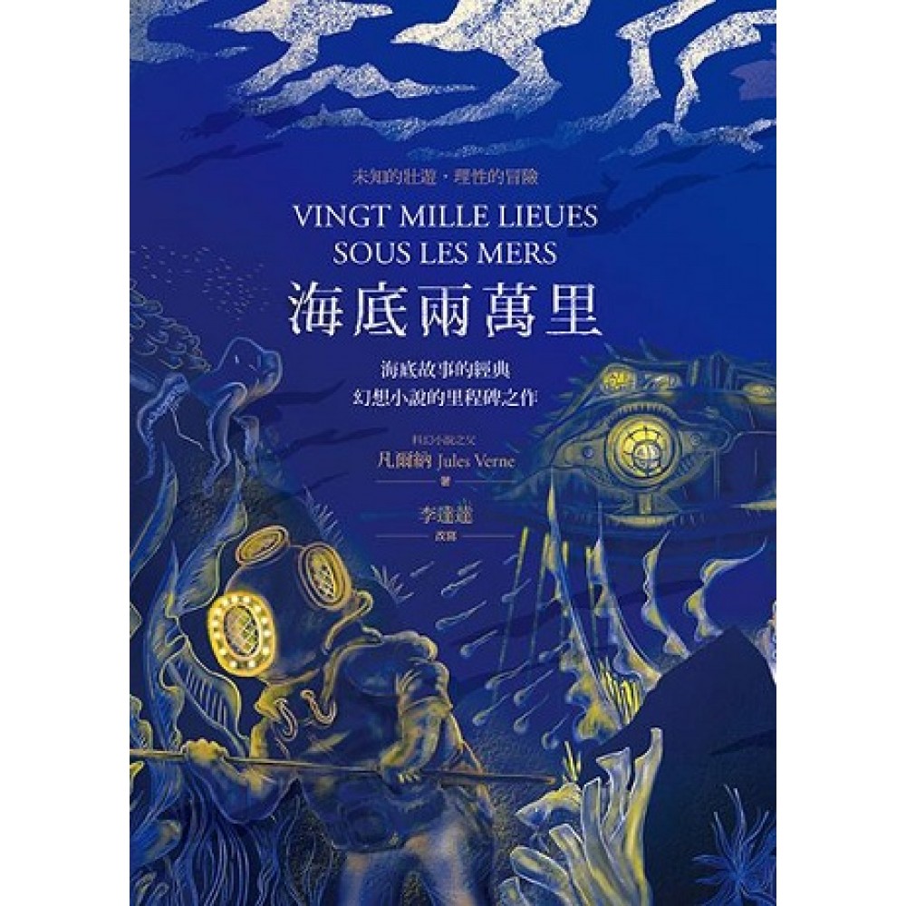 01 移動的礁石 西元一八六六年發生了一些離奇的事件。讓歐洲美洲的航海員們特別激動,從商人、船東、船長到各國海軍,都對這件事展現極高的關注。 事件的概況是這樣的:有段時間,幾艘船在海上遇見一種龐然大物,梭狀外型,時而發出磷光,體積比鯨魚還要大,行動速度也遠比鯨魚快。 不只一艘船遇見這龐然大物,眾多的目擊描述都相互吻合。然而種種線索拼湊起來,卻又顯得極不合理。海洋生態學家認定這怪物不可能是現存的鯨魚,海怪的傳言四起。 一八六六年七月二十日,有一位船長在澳大利亞東海岸五海哩的地方目擊到這個龐然大物。這位船長一起先還以為遇上了一塊巨礁,但這塊礁石卻在他面前噴出了兩道150英尺高的水柱。除非礁石上有噴泉,不然這就是一條鯨魚。 同年七月二十三日,另一艘船在七百海哩外的太平洋面上目擊了這條鯨魚。短時間內出現在兩地,證明了另一件事,這條怪鯨魚游得極快。 兩個星期後,在兩千海哩外,又有兩艘郵輪同時在大西洋洋面上看到這隻海怪。這兩艘船的首尾長度都有一百公尺,但仍然不比這隻海怪長。在此前,人們所觀察到最大的鯨魚從來沒有超過五十六公尺。 這隻海怪不但成為都市裡的熱門話題,也引發了各方論戰。那些懷疑論者與神靈的支持者在各種報刊上筆戰。但就像所有論戰一樣,這個話題在一陣互相嘲諷之中逐漸被淡忘。 直到一八六七年三月五日,一艘滿載兩百三十七名乘客從加拿大出發的郵輪,夜間航行至北緯27度30分、西經72度15分的海面上,右船舷高速撞上了一塊海圖上沒有標明的礁石。幸虧這艘船船體堅固,船殼才沒有破裂,沉入大海。上岸檢查之後,技師們才發現船底龍骨已經部分受損。 三星期之後,類似的事件再度發生。 一八六七年四月十三日,一艘英國籍的大郵輪航行在北大西洋洋面上,北緯45度37分、西經15度12分。下午四點十七分,船上的乘客正聚在大廳用餐,這艘名為斯哥蒂亞號的郵輪左舷後方傳來了一陣輕微的震動。更清楚一點地說,它是被戳了一下。要不是船員大喊船艙進水了,大概只會被誤以為是一波海浪造成的衝擊。 船內大量進水,七個船艙雖然各自密封,但海水已經灌入第五個船艙。幸好蒸氣鍋爐所在的船艙沒有遭到海水入侵,否則爐火熄了將不堪設想。這艘斯哥蒂亞號郵輪,就在半淹水的狀況下,延誤了三天才緩緩駛回港口。 工程師們在船塢為斯哥蒂亞號進行檢查,看到了難以置信的景象。船體吃水線下兩米半的地方被撞出一個等腰三角形的大洞,破洞的邊緣乾淨俐落,恐怕連鑽頭都不能鑽得如此精確整齊。鑿出這個大洞的工具,肯定不是普通的焠火技術能打造出來的。畢竟,它不只是穿透了四公分厚的鋼板,它還能在撞擊之後拔出它的銳角,全身而退。 這個事件讓輿論再次沸騰。從此之後所有的海難事件,都歸咎給這個海怪。隨著沈船事件接連發生,這個海怪不論是否存在,都已經是代罪羔羊。 因為它對人類航海造成了威脅,人們決定不惜一切代價,消滅這條巨鯨。 02 贊成與反對 上述那些事情發生的時候,我剛結束一段在美國荒野地區的科學探索。我身為巴黎自然博物館的客座教授,受法國政府委託,在美國工作了六個月。在回返法國之前,我待在紐約分析收集來的礦物與動、植物樣本。就是在這段期間,斯哥蒂亞號被戳了一個洞。 我抵達紐約時,這個話題正在沸騰。某些智商不高的人,提出了浮動小島或者漂泊礁石的假設。這樣的假設當然很快就被鄙棄,除非礁石內裝有機器,否則它不可能在海上高速移動。同理,那也不可能是什麼巨大殘骸或者遇難船隻所構成的浮島。 人們各持己見,一派認為那是頭怪物,另一派認為是某種「潛水船」。但任何一個平民都不可能秘密打造那樣巨大的機器。 目前看來似乎只有各國政府有本錢做這樣的事。然而,潛水船的建造依舊是大工程,要保守機密更加困難。各國也都發表聲明,公佈調查報告,最終推翻了潛水船的假設。 於是在各家小報的大肆渲染之下,人們的想像力又再次翱翔,認定這大海中存在著某種神奇的魚類。 我抵達紐約後,許多人都問我對於這件奇聞的看法。我曾在法國發表一部稱為《海底奧秘》的著作。這部作品讓我成為海洋博物學的專家。不久,我就在迫不得已的情況下,表明了自己對整件事的看法。 以下是我於四月三十日發表在《紐約先驅論壇報》上的文章之節錄。 對各種假設進行了謹慎的研究之後,我相信這種力大無比的海洋生物真的存在。我們對海洋深層一無所知,探測器也無法深入海底。海平面下12000公尺或15000公尺的巨大水壓之下,存活著怎麼樣的生物呢?這一切我們都無從猜測。 但是,我們還是可以用推理的方式去思考。