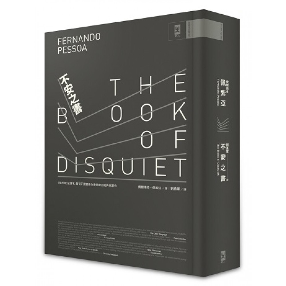 全球五十四個國家共同票選「歷史上最棒的一百本書」。 臺灣首度出版經典全譯本。 與聶魯達並列「最能代表20世紀的詩人」 葡萄牙國寶作家, 歐洲現代主義核心, 80年代西方文學代表人物。 仿日記體片段式隨筆,費爾南多‧佩索亞化身為無數名「異名者」,粉碎自己的內心,探究平凡自我無數可能的面向,深入心底,直達失落的靈魂禁區。 《不安之書》是費爾南多•佩索亞的代表作之一,全書內容曾經長期散佚,且多為「仿日記」形式,在佩索亞逝後五十年,終於由眾多研究專家蒐集整理而成。佩索亞在散文和詩歌中幾乎不使用本名,而是通過「異名者」的身分進行寫作。在其他的作品中,這些「異名者」甚至有自己的傳記、個性、政治觀點和文學追求。佩索亞穿梭在數十位「異名者」之間,不斷變換隨筆的立場,其中以會計助理身份出場的「貝爾納多•索亞雷斯」與他本人最為接近,也在相當的程度上呈現佩索亞對生活、對命運、對世界的深刻認知,以及一個瀕於崩潰的靈魂的自我認識。 《不安之書》的「不安」代表永遠處於踟躕、不確定和過渡中, 是靈魂的無政府主義者,以各種角度檢視所謂的「存在」與「真實」。 喬治‧史坦納:《不安之書》為里斯本下了魔咒,使它如同喬埃斯的都柏林,卡夫卡的布拉格。 周芬伶:佩索亞的《惶然錄》(The Book of Disquiet),是我最常重讀的。只是一本隨筆札記,但其中寫他的夢想與內心,寫他雖然一無所有卻還是渴望去愛,渴望一種偉大。他所擁有的一切如此窄仄,他依舊感激生命,甚至為生命流淚。這對我恆常有著吸引力。 重要事件 1985年(佩索亞逝後50年),《不安之書》首次整理出版。 2001年時報出版《惶然錄》(不安之書節譯版) 2002年,54個國家共同票選為「歷史上100本最棒的書」──Norwegian Book Clubs