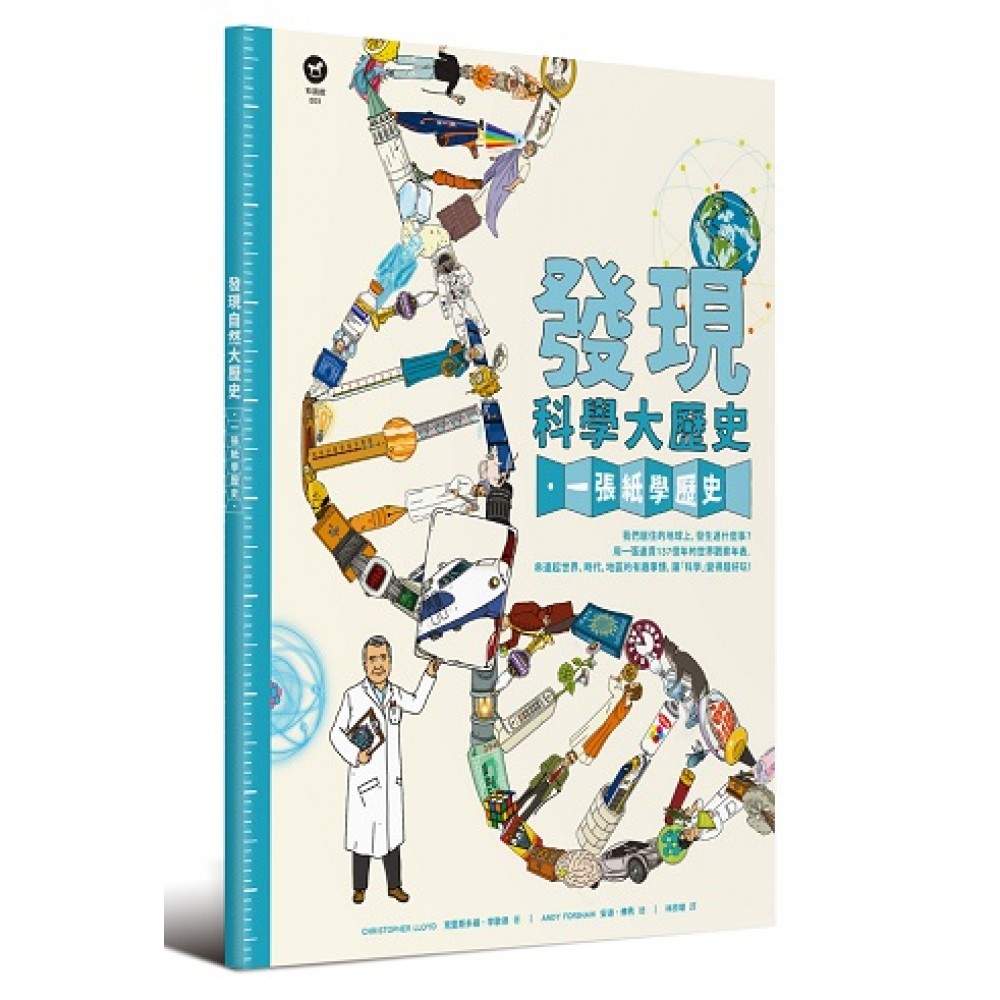 產官學界一致熱烈推薦、史上最不一樣的學習書 地球上有什麼? 用一張超長的拉頁時間年表,從「科學」的歷史開始, 橫跨年代、地區、類別;發現科學史上最精彩好玩的事物! 孩子的學習,應該是有趣又活潑的; 本書從科學的起源與發展,串連起世界與人類的文明,激發起人們對世界的好奇心! 數字的起源是什麼時候,化學元素如何被排列? 電話是誰在什麼時候發明的? 什麼時候人類才知道天空只是一道界線,以及數字是如何出現的? 為什麼要飛上太空?化學之父為什麼會被逮捕? 對科學與發明有興趣的孩子,能夠在家長的陪伴下,透過一張能像海報一樣展開、長幅不間斷的拉頁年表,自由穿梭在古今中外的歷史事件中,發掘前人的智慧與精華,找到他們自己的方向。 在年表的協助下,搭配橫縱座標軸,清楚標示出科學的發展、時代大事,與科學如何巨幅影響人類、地球的相互關係,讓這個有趣、與人類發展息息相關的主題,和我們的生活串連起來。縱覽科學大事的原因和結果;又能藉由垂直閱讀,看到世界上每個時間點、每個角落正在發生的事情。 本書特色 ★200公分獨創拉頁年表、200張插畫彩圖、30篇趣味報導、50個學習測驗。 ★跳脫課本的片斷知識,以時間軸說明科學演進史,橫跨古今中外、串連中西,帶領孩子優遊於完整豐富的歷史中。 ★能閱讀又能玩的知識性繪本!互動式趣味閱讀,引導式思考,建立孩子獨立、多元、自發性的思維模式。