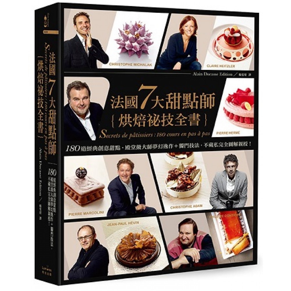 夢幻級陣容,殿堂級大師, 史上第一次大匯演! 「甜點界畢卡索」皮耶•艾曼Pierre Hermé 「巧克力藝術大師」尚-保羅‧艾凡Jean-Paul Hévin 「比利時巧克力之神」皮耶.馬可里尼Pierre Marcolini 「烘焙界野獸派大師」菲利普•康帝辛尼Philippe Conticini 「精緻甜點型男大師」克里斯多福•亞當Christophe Adam 「法國最佳女甜點師」克萊兒‧艾茲勒Claire Heitzler 「世界甜點冠軍」克里斯多福•米夏拉Christophe Michalak 7大名師獨門技法,180道經典創意甜點完整收錄! 從基礎、入門到進階食譜, 烘焙新手和專業高手必備甜點聖經! ◆烘焙書夢幻逸作!史上第一本匯集法國7大殿堂級名師手藝技法的甜點鉅作!包括:「甜點界畢卡索」皮耶•艾曼(Pierre Hermé)、「巧克力藝術大師」尚-保羅‧艾凡(Jean-Paul Hévin)、「比利時巧克力之神」皮耶.馬可里尼(Pierre Marcolini)、「烘焙界野獸派大師」菲利普•康帝辛尼(Philippe Conticini)、「精緻甜點型男大師」克里斯多福•亞當(Christophe Adam)、「法國最佳女甜點師」克萊兒‧艾茲勒(Claire Heitzler)、「世界甜點冠軍」克里斯多福•米夏拉(Christophe Michalak),一揭大師的夢幻逸品和不傳之祕! ◆40道必學法式基礎甜點:麵團、蛋白霜、麵糊、熟麵糊、發酵麵糊、奶油醬與慕斯、醬汁、裝飾和鏡面淋醬。 ◆140道不可錯過7大名師代表作,如Pierre Hermé的經典馬卡龍Ispahan、Christophe Michalak的鹹焦糖修女泡芙、Jean-Paul Hévin的酥脆巧克力塔、Christophe Adam的巴巴蘭姆酒蛋糕等。 ◆1200張精美成品圖和步驟圖,詳盡圖解每道甜點的製作過程和最終成品。 ◆深入介紹各種食材、材料與烘焙工具、新手必學的基礎技巧、高手進階的專業技法。 ◆詳細解說烘焙時必須要知道的專業用語和技法訣竅,以及常見的烘焙問題與解決方法。 ◆書末詳附食譜索引、食材索引、甜點師索引、難易度索引、甜點類型索引,方便查找參考! 從此不必花大錢出國學藝,一次親炙7大世界頂尖甜點名師的手藝技法! 本書詳盡傳授法式甜點基本功,並教導製作皮耶•艾曼(Pierre Hermé)、克里斯多福•亞當(Christophe Adam)、菲利普•康帝辛尼(Philippe Conticini)、克萊兒‧艾茲勒(Claire Heitzler)、尚-保羅‧艾凡(Jean-Paul Hévin)、皮耶.馬可里尼(Pierre Marcolini)和克里斯多福•米夏拉(Christophe Michalak)等各家甜點大師最具代表性的食譜。 先從40道基礎食譜入手,打好經典甜點根基,掌握甜塔皮、千層派皮、蛋白霜、泡芙麵糊、布里歐修麵團、甘納許等訣竅。然後大展身手,學習製作140道不容錯過的創意糕點:塔派、小點心、閃電泡芙、修女泡芙、巴巴蘭姆酒蛋糕、夏洛特、瑪德蓮、蛋糕等。無論是新手入門食譜或高手進階食譜,每一道都是必學的頂尖甜點大師夢幻逸作! 透過這180堂逐步示範的課程,親炙甜點界赫赫有名的大師手筆,最終展現個人風格。