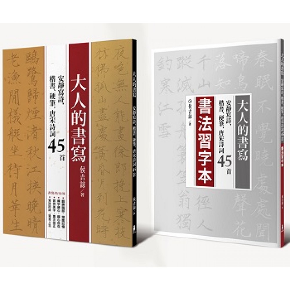 書法名家侯吉諒第一本硬筆、書法習字帖 大人書寫的功用: *鍛鍊腦部,增進記憶 *練字練心,靜心自在 *習得美字,專注端正 *寫詩吟詞,寫意人生 本書習字帖特色: ※書法名家不藏私,可以練習美字,也可以貼近學習名師寫字技巧、精髓。 ※書內摘有45首精選歷代著名的絕句短詩,因應詩中表現的情景、感受、懷抱,以各種書法字體書寫,也同時以硬筆書寫,希望可以用書法表達出古詩的意境,也希望能夠讓讀者比較毛筆、硬筆的書寫效果,從中了解書法筆法應用在硬筆書寫中的訣竅。 ※安靜寫詩,可以達到腦部鍛鍊、專注靜心、身心放鬆的多方功能。 關於「安靜寫詩習字本」: ◎臨摹書法名師侯吉諒的字,感受中文的結構、空間與風格。 ◎習字本紙張採用日本上質道林,平滑易書寫,墨水不暈開。 ◎詩詞採刷淡印刷處理,可直接書寫於上,或於其他紙張描摹。 ◎字體舒適適中,適合中老年人書寫習字。 ◎美字臨摹本,採用進口紙張,易寫易乾,隨心所欲使用在想練習的字帖上。 如何寫好字? 把字寫得好看,本身就是一種享受,可以安靜寫字,是繁忙生活中讓心情沉澱最好的方法;古人說「書即心畫」,寫字能夠表現出一個人一時一地的心境,因為寫字可以連結心手的互動,可以調和一個人的理性與感性,達到潛移默化的功能。 所以找到有趣、有效的寫字的方法非常重要,如果可以在練字的同時,增加文學的素養、感受,必然更有意想不到的效果。 如果可以在練字的同時也熟悉詩詞的內容,因此熟悉毛筆書寫詩詞的筆法、結構、格式,則可以一舉數得。 寫書法不容易,對大部份的人來說,寫書法可能太過困難。但退而求其次,習寫硬筆寫字也不錯。 比起毛筆,寫硬筆字相對來說比較容易,但還是需要一定的練習,學習硬筆字最好的方法,還是要有範本,可以對照練習,也才能知道自己什麼地方寫得不好,要如何改進。 把毛筆寫好,通常對硬筆字會很有幫助,而要把硬筆字寫好,最好的方法是參考毛筆的書寫技法。 本書精選歷代著名的絕句短詩,因應詩中表現的情景、感受、懷抱,以各種書法字體書寫,也同時以硬筆書寫,希望可以用書法表達出古詩的意境,也希望能夠讓讀者比較毛筆、硬筆的書寫效果,從中了解書法筆法應用在硬筆書寫中的訣竅。更希望透過這樣的練字、讀詩的方式,讓大家深刻體驗書寫、閱讀的雙重美感。