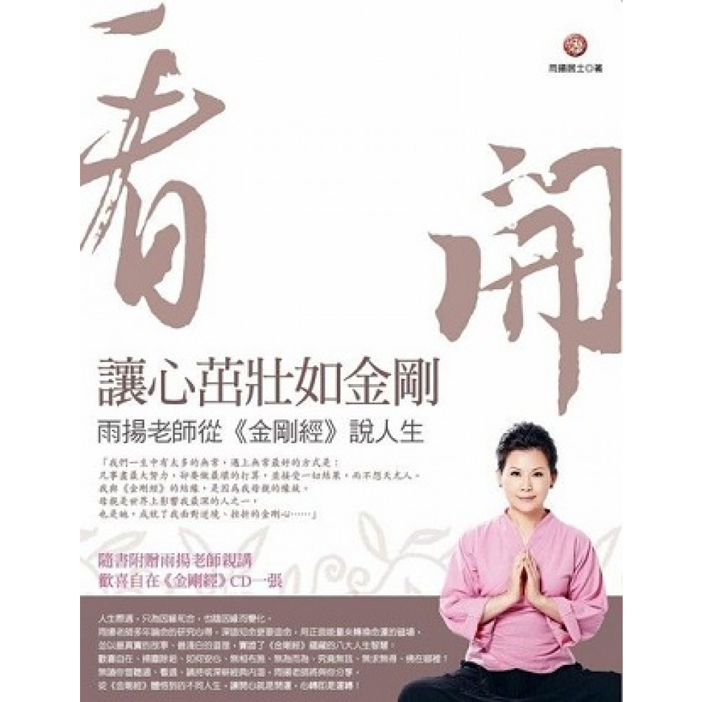 不同的經典解讀,全新引領讀者進入《金剛經》的智慧 A 雨揚老師從《金剛經》說人生故事 B《金剛經》全文暨白話註解 C 歡喜自在《金剛經》:雨揚老師四轉金剛心CD版 「我們一生中有太多的無常,遇上無常最好的方式是:凡事盡最大努力,卻要做最壞的打算,並接受一切結果,而不怨天尤人。 我與《金剛經》的結緣,是因為我母親的緣故。 母親是世界上影響我最深的人之一,也是她,成就了我面對逆境、挫折的金剛心……」 人生際遇,只為因緣和合,也隨因緣而變化。 雨揚老師多年論命的研究心得,深諳知命更要造命,用正面能量來轉換命運的磁場, 並以最真實的故事、最淺白的道理,實證了《金剛經》蘊藏的八大人生智慧:歡喜自在、掃塵除垢、如何安心、真正的布施、無為而為、究竟無我、無求無得、佛在哪裡? 無論你曾聽過、看過、誦持或深耕經典內涵,雨揚老師將與你分享,從《金剛經》體悟到的不同人生,讓開心就是開運,心轉即是運轉! 唯一結合命理體悟,自在領略《金剛經》的八大重點 看《金剛經》的佛陀智慧 開啟人生的歡喜自在 什麼是「無相布施」? 「小時候雖然家裡很窮,但是父親每回出門,都會把錢換成銅板,一路逛廟會布施給沿途的乞丐;我的母親也常告訴我,當幫助別人時,最好馬上走開,不要等待對方感謝的眼神。 長大後才明白,不執著布施的對象、功德,這就是『無相布施』……」 什麼是「心即是佛」? 「記得有一次法會,佐欽法王特別發給每人一條加持過的金剛結和大家結緣,發完後,一位參加法會的朋友,因為母親剛往生,希望可以多要一條火化給母親,可惜現場並無多餘。 當時我想起了自己也才經歷喪母的心情,於是把我的那條金剛結送給他。後來,佐欽法王得知此事,笑著對我說:「妳當了五分鐘的佛!」 每人都有佛心,當心中的善念生起,就是當佛的時候,正所謂『心即是佛』……」 《金剛經》是所有佛法的本源,也是一切佛經之母。 經中多次談到:以七寶做布施,不如去講經說法。所以,如果能讓更多人了解《金剛經》的美妙,種下解脫的種子,抵達幸福的彼岸,是一件無比殊勝的事! 雨揚老師因為母親的緣故,體認到《金剛經》的殊勝,願以此人生心得,與大眾分享歡喜自在的祕訣。