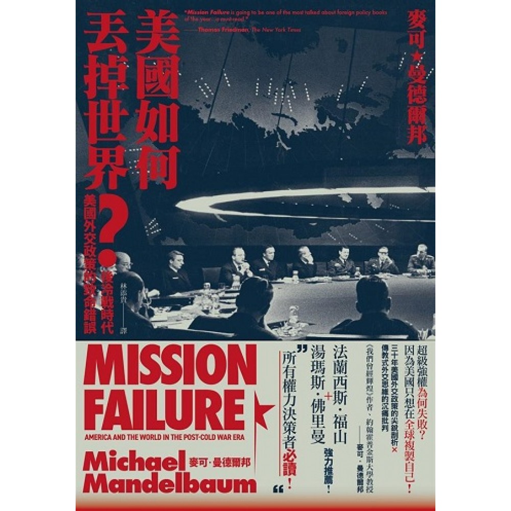 ※三十年來美國外交政策最尖銳的分析與檢討。 ※美國保守派外交思維代表巨作。 國際社會的遊戲規則恆常彌新, 為所欲為的超級強權踢到鐵板。 一九九一年三月三日,在伊拉克南部沙伏旺空軍基地,在英、法及沙烏地阿拉伯代表的陪同下,美軍司令史瓦茲柯夫代表美國政府接受伊拉克提出的停火協議。這是劃時代的一刻,不僅宣告海灣戰爭的落幕,更象徵著美蘇長達四十年的冷戰的終結:一九四五年以來第一次,蘇聯與其附庸沒有反對美國領頭的重大國際行動。 然而,儘管蘇聯解體後美國享有人類歷史上從未有過的主宰性優勢,絕對的權力帶來威望與光榮只是短暫的。隨後,我們看到的是美國國力的重挫,無論是名聲還是實力。 權力的億萬富翁肆意揮霍,傳教式外交政策鎩羽而歸。 為什麼?麥可.曼德爾邦在本書中提出發人深省的檢討:在後冷戰時代,由於國際上再也無人可以限制美國隨性實踐其意志,美國政治菁英總是帶著一種自命不凡的優越感,以傳教士的心態來推動其外交政策,試圖在全球推廣美式自由民主與市場經濟。另一方面,由於安全威脅已經解除,外交問題不再是全民關切的焦點,因此不幸被少數利益團體所把持,短視的政客只求討好國內民意以贏得大選,缺乏對國家整體長遠利益的規劃。 思維傲慢,態度輕率,專業判斷讓位給嘩眾取寵的短期利益,導致美國儘管有無比的軍事、經濟資源,卻在外交工作上敗績連連。軍事任務雖然成功,但政治任務功敗垂成。無論是在索馬利亞、波士尼亞、伊拉克、阿富汗、中國,甚至是在加勒比海小國海地,美國推動的自由市場與民主改革都全軍覆沒。柯林頓政府一意孤行的北約東擴,不但沒有促進俄羅斯的民主轉型,甚至引發美俄交惡,成為美國外交史上的最大敗筆。 世界警察息鼓收兵,國際秩序如何維持? 因此,曼德爾邦呼籲,美國在當今世界真正應當扮演的角色是國際和平秩序的維護者,而非個別國家內部結構的改造者。美國應該關切的是各個主權國家在國界之外的外交行為,而非國界之內的內政行為。因為後者並非美國能力所及,無論它多麼強大。 然而,這麼做是否意味著往後國際社會將放棄「人道干預」的道德正當性,縱容任何國家以「主權原則」之名在國內迫害民主人權、甚至是進行種族清洗?當全球各地極端民族主義與保守主義勢力抬頭的當下,這是否意味著美國將採取「光榮孤立」、對海外的暴政袖手旁觀?麥可.曼德爾邦並不這麼認為,但他主張,美國必須尋找出一個最節約、最不費力的方式維持國際秩序。究竟該如何落實?這將是往後美國政府亟需思索的難題,也是包含台灣在內全球各地的美國盟友需審慎應對的變局。
