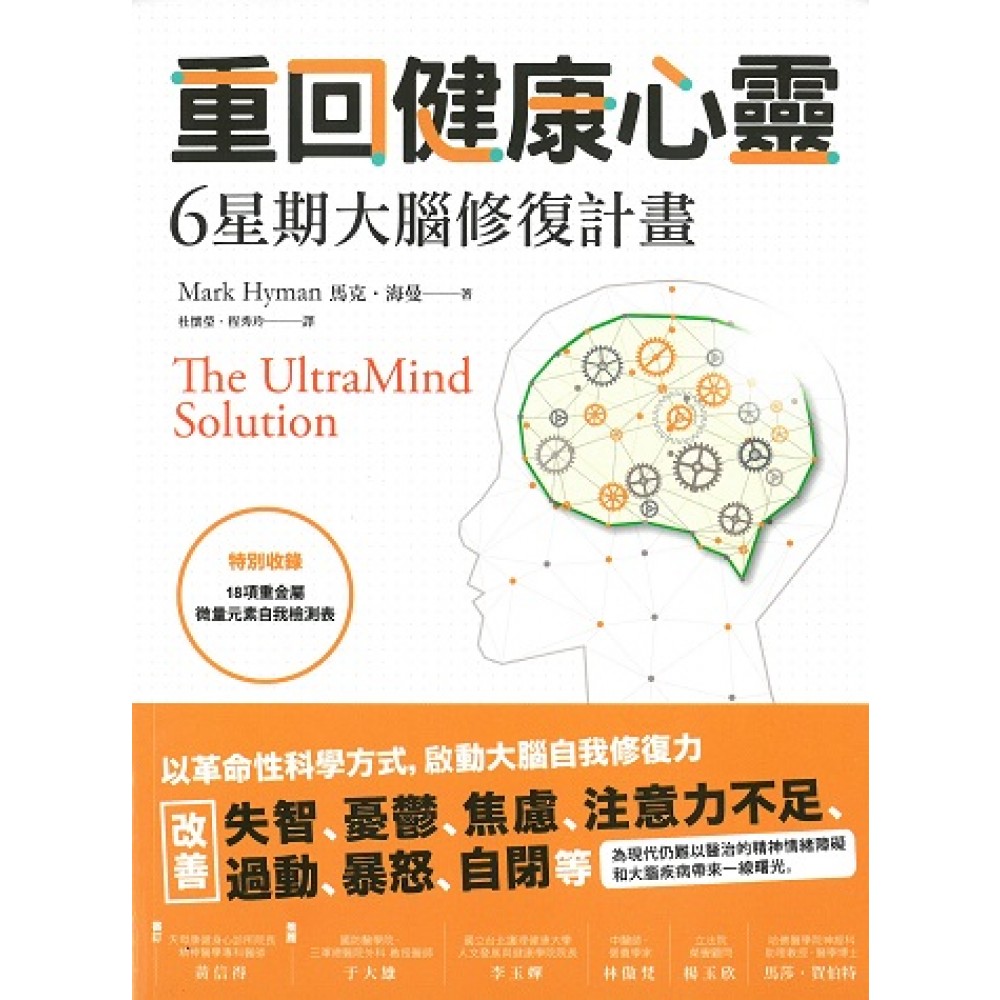 前言 為什麼疾病無關緊要? 在打開這本關於大腦與情緒的書時,我猜書中沒有任何關於沮喪、焦慮、注意力不足過動症(ADHD)、自閉或阿茲海默症等熟悉疾病的章節,會讓你大吃一驚,取而代之的是關於營養、荷爾蒙、發炎、消化、排毒、活力與鎮定情緒的章節。 如果疾病是如我們所知的,是可以找出我們的大腦、情緒、思維出了什麼問題的有效方法,那我會寫一本關於疾病的書,但是疾病派不上用場。相反地, 本書探討的是我們的大腦到底出了什麼問題。是關於我們的精神折磨,以及沮喪、焦慮、失智症、自閉與注意力不集中等現代社會流行病的真實原因與解決方法。 推薦序1 在二十一世紀, 生物學的口號是「系統」。由於複雜精密的科技遙遙領先, 我們淹沒於大腦與身體功能整合的大量資訊。所有的事物都是環環相扣的,卻又各自獨立。單一基因單打獨鬥的時代已經過去,取而代之的是密密麻麻的網絡;單打獨鬥的遺傳學已經落伍,取而代之的是跨層面的相互連結。基因組學、蛋白質體學、代謝學以及繁多的「體學」,都是彼此交纏盤錯的。這是新的「系統生物學」。 這和我們的健康有何關係? 在二十世紀, 醫學將身體切割成不同的專科—神經科、心臟科、胃腸肝膽科與內分泌科。專科醫生鑽研他們所屬的身體部位; 但是有誰觀照到整體的情況呢? 只有極少數的醫生擁有全面觀照的技能。系統生物學要求全新的方式,功能性醫學也隨之應運而生。治療方式不再將身體視為個別器官系統的總和, 而是檢視細胞與系統的運作方式, 以及探討它們如何產生問題。功能性醫學是臨床醫療中, 系統生物學的實際介面。搜尋系統的問題,及早找出與處理根本的原因,而非治療症狀。 在第二十一世紀,大腦與身體的緊密連結也愈來愈清晰,大腦與身體狀況更是唇齒相依。如果大腦是在身體裡面,身體系統出了狀況,大腦也會隨之出現問題。許多功能失調的生理系統,也會造成大腦功能的失調。海曼醫生使用功能性醫學來說明治癒失調的生理系統, 不但恢復生理的健康, 也促進大腦的活力。 現在可以了解造成「心理疾病」的化學反應失衡,與更多的系統、化學反應及新陳代謝問題都有密切的關聯, 因此是可以從生理層面著手治療的。只治療大腦化學反應會造成藥物依賴性, 而治療生理的化學反應可以修復大腦的化學反應失衡,並產生真正持續性的療癒。 在諸多壓力、化學與環境挑戰的肆虐之下,我們的生理狀態受到影響,大腦功能無法如常運作, 這種情況就不足為奇了。海曼醫生邁向絕對健康的七大關鍵, 提供明確的方法支持與療癒我們的核心功能系統。更多的研究是很重要的, 我們已經知道要如何立即有智慧地面對這些挑戰, 海曼醫生不只告訴我們來龍去脈,還教導我們如何應對的方法。 瑪莎賀伯特(Martha Herbert) 醫學博士 哈佛醫學院的神經科助理教授 麻州總醫院超越研究計畫主任 推薦序2 現代生活環境工作人際步調都緊湊,有形無形壓力遽增,人人都需默默承受並力圖克服,但日積月累終至容易造成短暫性的疲憊,甚或長期的身心創傷,如大腦早期退化相關之老年癡呆或不明原因之阿茲海默症等,常見的身心官能症相互作用導致的憂鬱、暴力、自殺、相殘等不良結果,實是刻不容緩有待大家一起努力面對解決的人生健康一大議題。 絕對健康指的是身心靈三方面的最佳狀態,作者以多年的臨床經驗與觀察提出了七大關鍵要素:包括了外在的營養與排毒問題,內在的賀爾蒙平衡,體內發炎現象,消化能力,能量代謝與心靈靜盈等都是全面且貼切的核心事實。本書並對症下藥,針對受傷累累的大腦提供了六周基礎準備的方法和六周的身體力行的實務方法。前者分別由食物營養的準備,運動睡眠,身心環保和沉澱心靈再出發,使身心在睹能回歸到零的起點,也就是古人所言「明心見性」。緊接著再依序由營養補強等七大關鍵因素逐一矯正調整,正本清源減輕壓力,排除負荷重建能量,使個人再獲得身心靈三方面的新生與再造,最後可再次得到絕對的健康。 誠如作者所言此書從醫學人本角度剖析,可重新改變我們的思維觀念及生活方式,以達到修復「破碎大腦」之完美境地。各人於此有幸推薦此書並期望對廣大的讀者及家人健康維護與照顧有莫大助益。 于大雄 國防醫學院 三軍總醫院 外科 教授醫師 推薦序3 現代人搶救大腦失靈防治憂鬱失智的健康自救計畫 世界衛生組織估計憂鬱症影響了大約全世界一億二千一百萬人,占所有失能原因的12%左右,估計到2025年會更嚴重成為現代人失能第二大主因。若再加上焦慮、注意力不足過動症(ADHD)、自閉症、失智症、帕金森氏症等等精神疾患或腦神經功能病變,都屬於大腦心智功能出現問題,本書稱之為大腦失靈的難題,而提出身心靈全方位修復大腦的新方式,作為極致的重建心靈健康自救之道。再三提醒讀者,心理出問題導致大腦失靈時,除了仰靠心理諮商藥物治療,更要調整身體營養失衡並搶救靈性枯竭,才可能逆轉大腦失靈進而營造全方位身心靈健康。這樣的見解也是我所在幸福人學院的倡議目標,希望能倡議身心靈著眼、大腦心智著手主宰,以營造人類幸福健康圓滿發展。 本書以極簡哲學教導人們簡簡單單運用八周健康術,來重掌健康主控權,重建自己的健康;因為每個人才是日常生活中最能幫助自己的人,自己健康得自己救,特別
