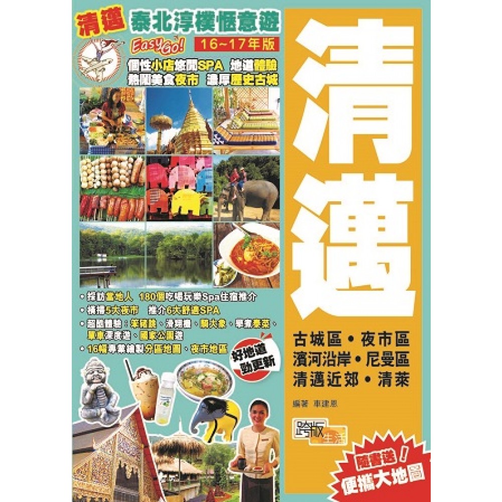 泰國古都「清邁」不只有寺廟,其實好玩又放鬆!本書推介180個遊點,包括熱鬧夜市、文青小店、個性Café、刺激玩樂、放鬆Spa、特色手工服飾店等;走勻清邁五大區(古城區、夜市區、濱河沿岸、尼曼區、近郊),採訪當地人,推介更地道;更附送清萊的熱門遊點推介。 【好玩體驗】在有機農場學煮泰菜;做一天象伕、坐大象上山;參加一日單車團、清邁社區深度遊;玩滑翔機、笨豬跳……想不到這個悠閒古都,體驗活動如此精彩,強烈推薦! 【五大夜市】本書首推週末限定的Sunday Market和Saturday Market;還介紹了三個各具特色、每晚營業的夜市。分享每個夜市的購物推介外,還提供清邁五大夜市地圖。 【清新小店、Café】比起大型連鎖店,作者更喜歡發掘小店:放滿玩味收藏品的Café、藝術創作或手工紀念品店、被畫作包圍嘆咖啡的畫廊、少數民族編織產品店等。 【舒適SPA】清邁有很多環境舒適的按摩店,價錢豐儉由人;作者親身體驗並推介六間Spa店,還四處搜羅了更多在酒店、寺廟的不同價位按摩選擇。