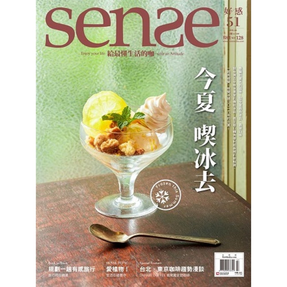Book in Book:規劃一趟有感旅行 說明:什麼是「有感」旅行?這其實是一種有著自我觀點的旅行主張,不管你的旅行型態為何,是自助行、是親子遊、是壯遊、是出差旅行……都好,藉由旅行的過程中,達到輕鬆獲得知識,發揮個人興趣,或跟世界旅人達到交流回饋的旅行價值。這種不再「為了旅行而旅行」的新的旅行型態正逐漸興起,而這樣的旅程,肯定打動您心,不管是行前規劃、旅途中與結束後,任何片段都彌足珍貴。 SENSE TOPIC:Let's be Green 愛植物! 說明:綠手指不是人人都擁有,看著植物從翠綠到枯萎總令人心煩挫折,其實越挫越勇、再接再厲總會抓到訣竅。綠的用意在於讓自己回到人類原初的自然環境、然而也是一種共同呵護環境的心意,如果氣候一直熱下去,我們將失去了所有生活的可能。來解這幾位親近植物的人是如何與植物一起生活吧!生活於綠意之中並不難,就從現在Let's be Green! Special feature:ONIBUS COFFEE坂尾篤史話咖啡 台北、東京咖啡趨勢漫談 說明:個頭不高的坂尾篤史,個性靦腆,很難相信他開的ONIBUS COFFEE在日本、台灣享有高知名度。但親近他很難不被他對咖啡的熱情所影響,不喝連鎖咖啡,他在意的是一杯可以反映主人理念的好咖啡,而為推廣咖啡文化,甚至前往非洲咖啡產區挑豆選豆,以步步為營的腳踏實地方式,貫徹他職人般的咖啡信念。 SENSE PEOPLE:TWG Tea的品牌學 說明:可說是亞洲知名度與展店速度皆竄升最快的奢華茶品牌,TWG TEA的兩位靈魂人物是Taha Bouqdib與Maranda Barnes夫妻檔,深知品質與細節是造就「精品」的最重要元素。 SENSE PEOPLE:RAW X Florilege 新世代的味道 說明:雖然位於不同國度,台北的RAW與東京的Florilege,卻擁有許多相似之處。首先,它們的主廚都很帥,還都曾在南法同家餐廳修業;兩家都是人氣爆表,一位難求的熱門餐廳,並在各自的餐廳裡,堅持做出代表新世代的味道。 Archiwalk:看見基隆x海科潮藝術「海洋未來式」 說明:國立海洋科技博物館繼去年辦理潮藝術活動,點燃基隆環境裝置藝術風氣後,今年響應基隆建港130週年,與基隆市文化局擴大辦理主題為「海洋未來式」的「2016基隆X海科 潮藝術國際藝術季」,希望透過多元活動內容,以擁抱廣闊太平洋的基隆為起點,調整與海洋對望的目光,並思索如何發展與海洋更友善、更融洽的互動關係。 MINI FEATURE:義大利「真食物」用愛調味,發展一個家的滋味 說明:談起義大利美食文化,身為義大利媳婦的楊馥如提到了一個有趣的觀點:「義大利食物起源於『貧窮食物』。」當年的「貧窮食物」如今都變成了令人印象深刻的美食饗宴,到底是什麼原因? Special feature:露營正夯 戶外民族風有型有款 說明:當露營蔚為風潮,千篇一律的樣式,總不免讓人感到些許無趣!其實露營玩法多變,可以走隨興的極簡風,或是華麗的Glamping風,還可以走戶外民族風,風格很強烈,露營更有型。 味道筆記本:Petit Park小公園 品嚐台灣小農的自然美味