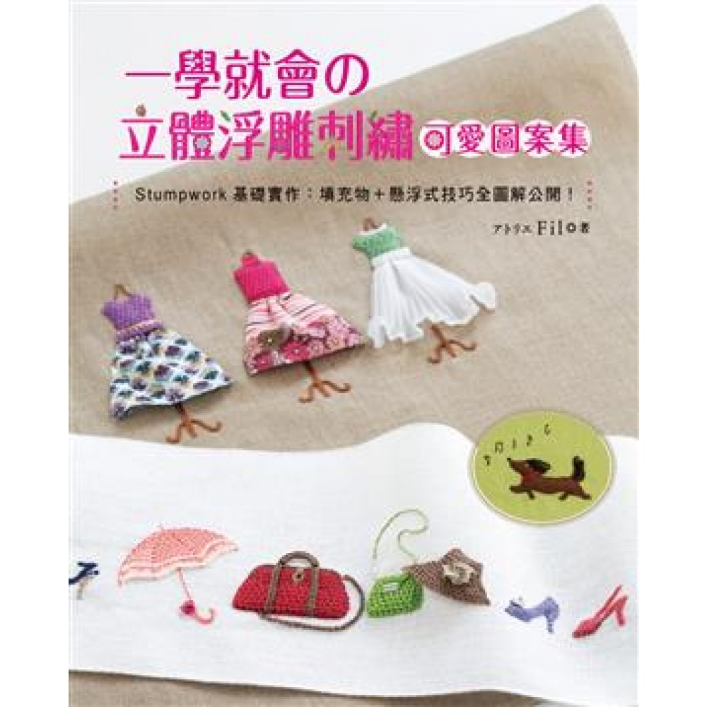 作者序 一學就會の立體浮雕刺繡可愛圖案集 藉由塞入填充物,或使其呈懸浮狀來營造出立體感的刺繡,即稱為「立體浮雕刺繡(Stumpwork)」。 雖然早在17世紀的英國就已經有立體浮雕刺繡的存在,但一直到進入19世紀才被稱為「立體浮雕刺繡(Stumpwork)」,據說是源自當時的立體浮雕刺繡是使用木屑(Stump)來當成填充物。 本書為了讓不論是第一次手持縫針的初學者,或已有刺繡經驗的熟手,都能享受立體浮雕刺繡的樂趣,故特以淺顯易懂的「アトリエ Fil」風格的立體浮雕刺繡作為學習目標。 由於以回針繡繡製的輪廓針數明確,因此只要在輪廓內依指示刺繡,自然就會完成漂亮的圖形。 此外也將刺繡種類盡可能的減少,集中於適合營造出立體感的圖案。 誠摯希望你能夠從中充分地體驗到蓬鬆飽滿的花樣的樂趣。 アトリエ Fil