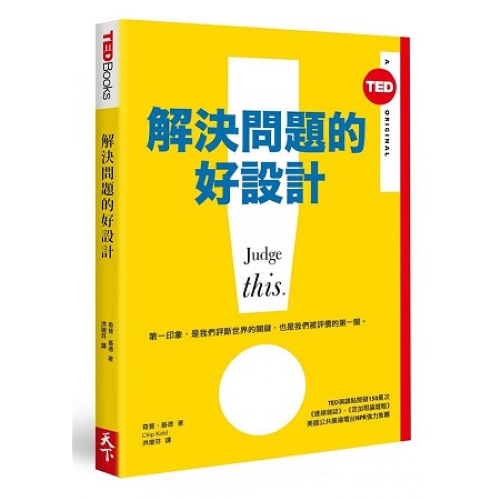 你的第一印象是什麼 !or? ※超人氣TED演講影片點閱破一百五十萬次 ※《連線雜誌》、《芝加哥論壇報》、美國公共廣播電台NPR強力推薦 第一印象,是我們評斷世界的關鍵,也是我們被評價的第一關。 第一印象,是我們認識朋友、接觸商品、體驗娛樂的第一把鑰匙。浸淫在視覺文化裡,我們的心智自然會對眼目所及一切人事物立即反應與判斷。下判斷並不是重點,重點是判斷的依據,是智力?同理心?還是好奇心? 曾獲美國設計界最高榮譽國家傳播設計奬(National Design Award)的著名裝禎設計師奇普・基德(Chip Kidd),利用他的專利─神秘度量衡─以設計的角度告訴我們,從你在讀的書、正在服的藥、網站設計與報稅表格,乃至於機場或地鐵站的動線……生活無處不需要設計,但問題是,這些設計真的有解決問題嗎?設計的本質就是要讓你在一看到它的同時就可以做出判斷,有些設計就是要直接清晰(!);有些則可以高深莫測富有想像空間(?);有時候又必須二者兼得。 本書中,基德揭露了這些設計如何影響我們建立第一印象,與我們在世界上的體驗從之而來的判斷。當我們擁有判斷的工具,將會發現世界無處不是令人目眩神迷的藝術作品。 TED Books系列 TED Books是介紹重要觀念的輕快閱讀系列,由TED團隊策劃製作,找專精領域又善於說故事的講者與作者,規劃出涵蓋多元領域的一系列TED Books。每本書的篇幅短到可以一口氣讀完,但是也長到足以深度解說一個主題,主題非常廣,從建築、商業、太空旅行、到愛情,包羅萬象,是任何有好奇心、愛廣泛學習的人的完美選擇。在TED.com上,每一本書都有搭配的相關TED Talk演講,接續演講未盡之處。十八分鐘的演講或播下種子、或激發想像,許多演講都開啟了想要知道得更深、想學得更多的渴望,需要更完整的故事。TED Books輕快閱讀系列正滿足了這個需求。